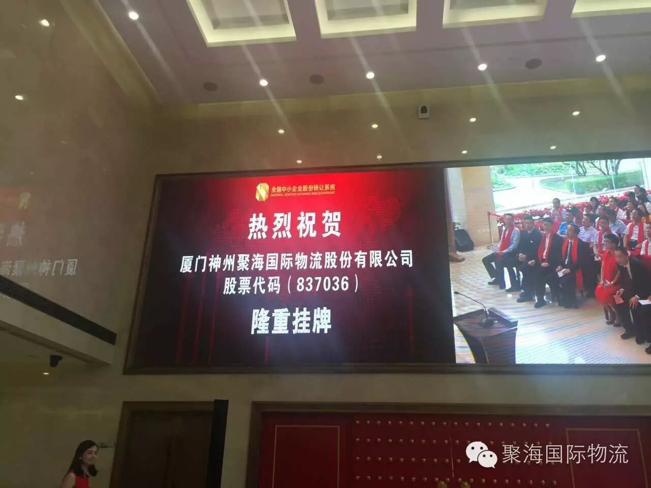 2016年6月6日下午15点,随着浑厚的开市宝钟敲响,厦门神州聚海国际物流股份有限公司正式在全国中小企业股份转让系统(“新三板”)挂牌,成功翻开我司进入资本市场的新篇章。